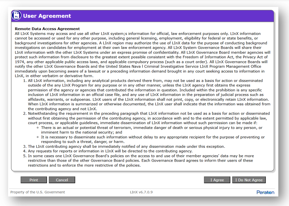 After reading the LInX Rules of Use Agreement, select the I Agree or the I Do Not Agree button.